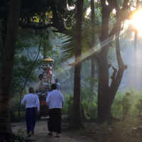 In the afternoon, the monks were summoned in the “thein”, Buddhist ordination hall, to be re-ordained while guests were waiting outside. When they came out from the hall, donations were offered again because it is believed that monks are having their purest precepts at that moment. It is also the best time for donations and more merit can be gained. Afterwards, everyone went home and back to their everyday lives and this was the end of the celebration. However, Nanttharpu’s Kahtain will remain in conversations among local community for months.