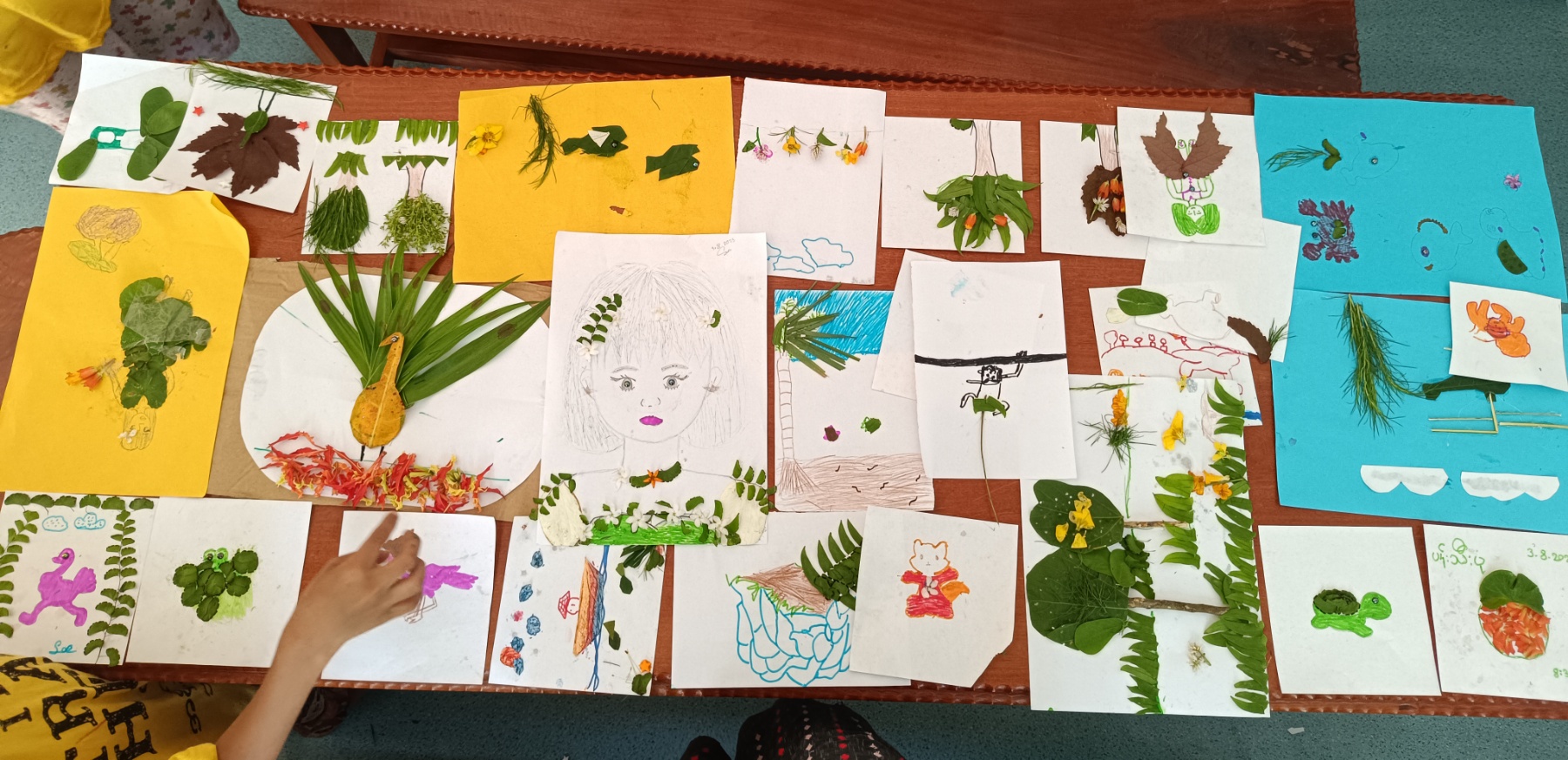 August’s session turned the spotlight on imagination. Children used paper, coloring pencils, flowers, petals, grass, and leaves to create artwork, then crafted stories to match their creations. The library became a gallery of vibrant illustrations and playful narratives, each one a demonstration to the power of creativity in shaping confident, original thinkers.